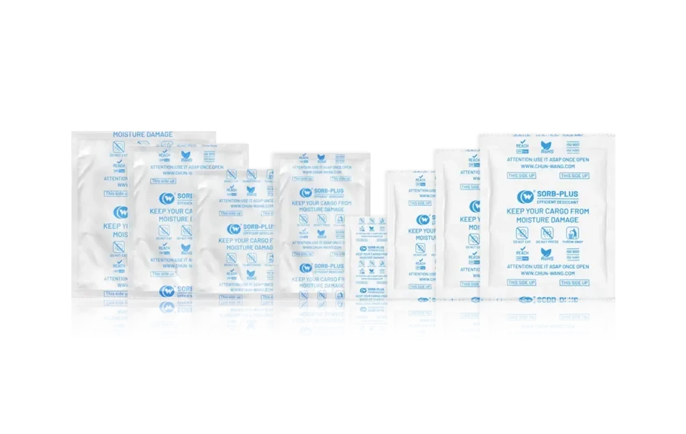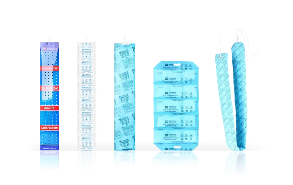 以氯化钙或氯化镁为原料的集装箱干燥剂,具备湿率高、吸湿速度快、吸湿持久、工作温度范围跨度大、不漏液、不易破损、符合环保要求的特点,能满足货物海动的所有要求。