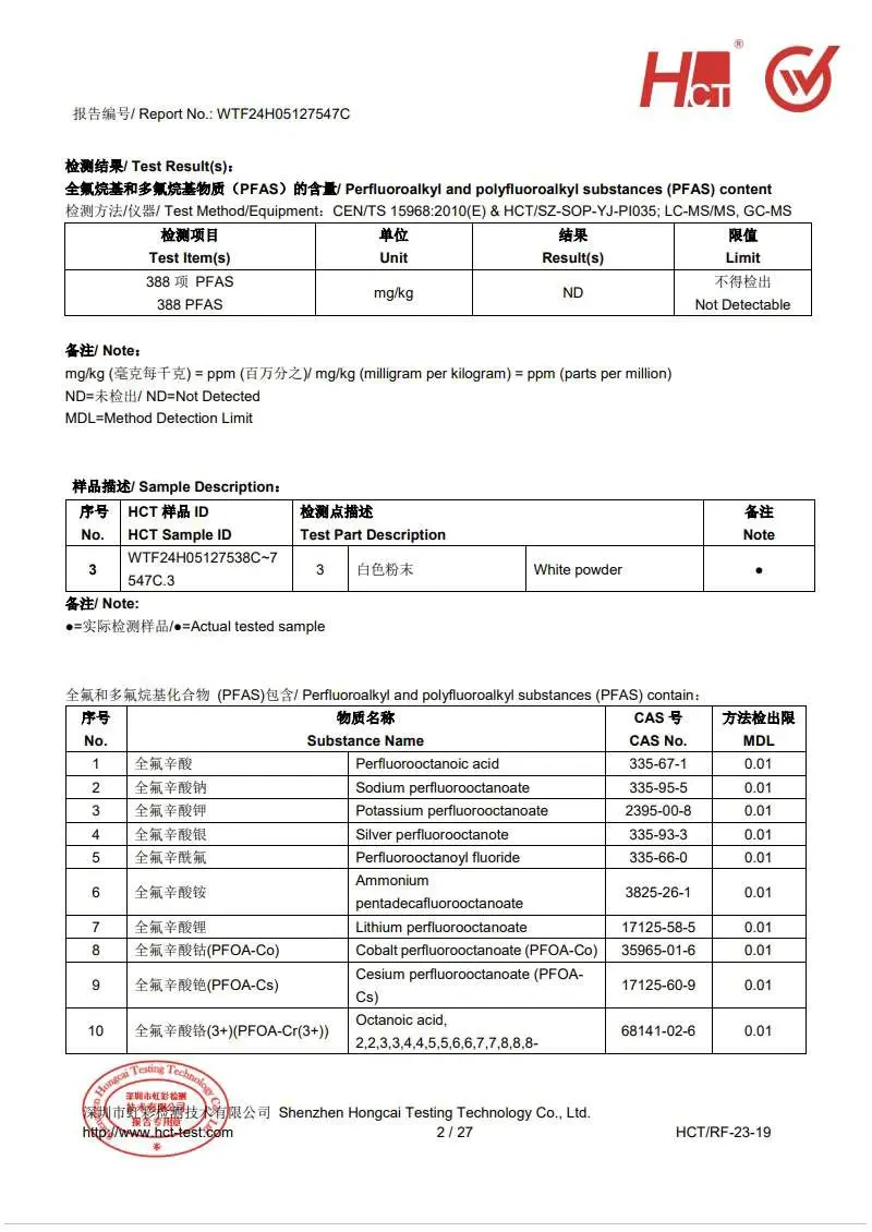 - 前瞻性合规:符合PFAS等新兴污染物的限制要求。
